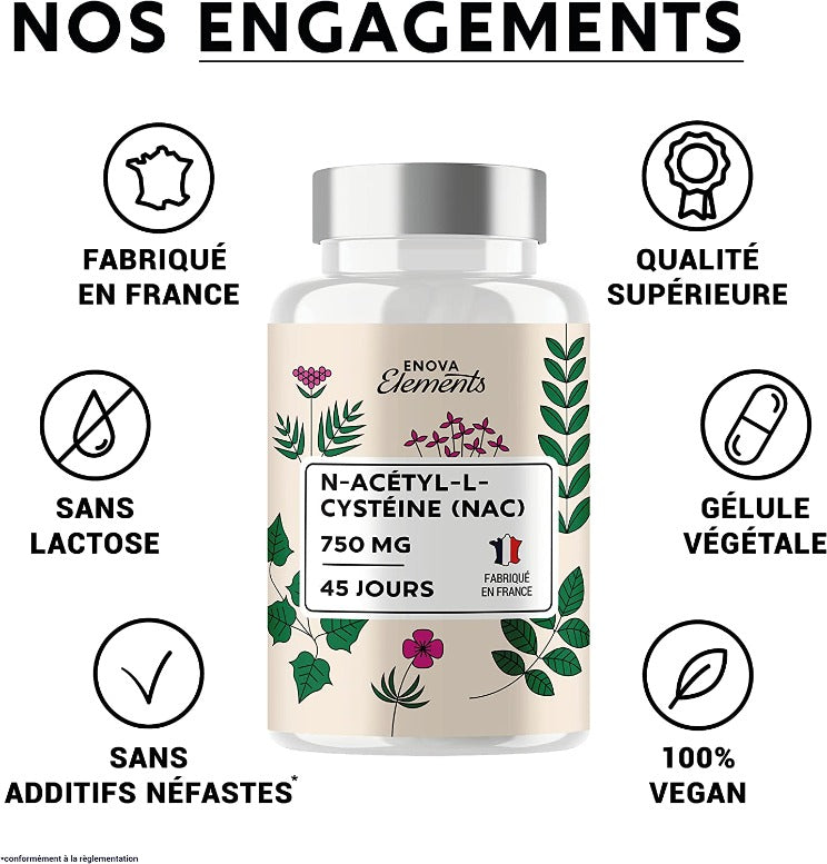 Alimentation pour le Bien être : N-Acétyl-Cystéine - Antioxydant, Immunité, Détoxifiant -100% végan -Enova