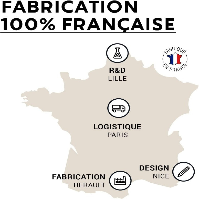 Toutes les étapes de production sont réalisées en France, de la R&D à la fabrication en passant par la logistique et le service client.